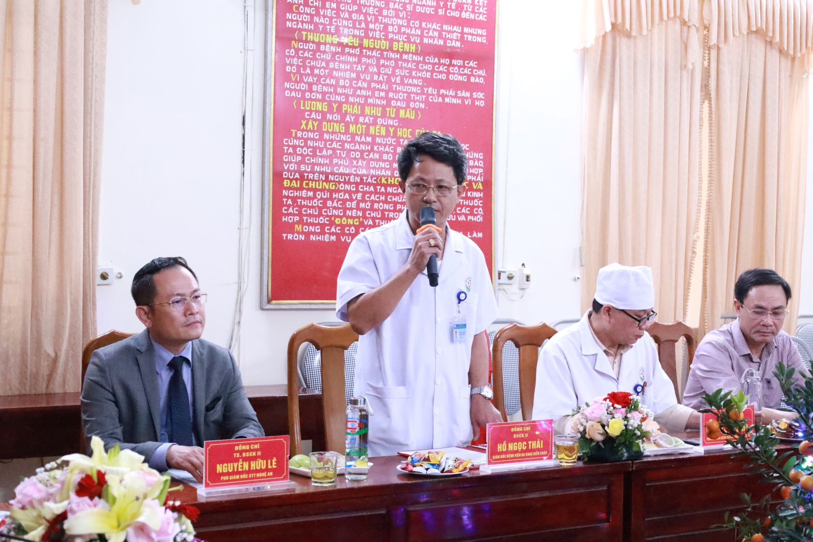 Thay mặt tập thể bệnh viện, Thầy thuốc Ưu tú, BS CKII Hồ Ngọc Thái – Bí thư Đảng ủy, Giám đốc Bệnh viện đã trân trọng cảm ơn sự quan tâm sâu sắc của lãnh đạo tỉnh. Đồng chí khẳng định đây là nguồn động viên to lớn để đội ngũ cán bộ, y bác sĩ bệnh viện tiếp tục nỗ lực, phát huy tinh thần trách nhiệm, nâng cao chất lượng khám chữa bệnh, xây dựng bệnh viện ngày càng phát triển, xứng đáng với niềm tin của lãnh đạo và Nhân dân.